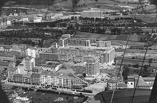 Calle Vitoria y al fondo la desaparecida Residencia Sanitaria