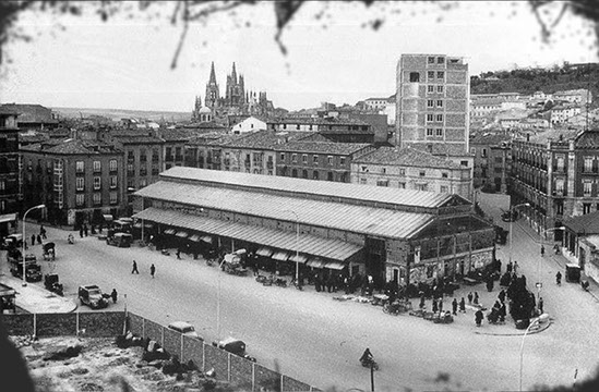 Mercado de San Lucas . Al fondo la casa de Santa Teresa de Jesús.
