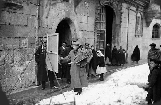 Sorolla pintando en el margen del rio Arlanzón . 1910