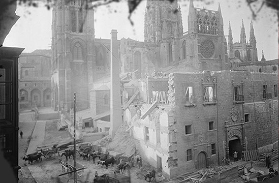 Derrumbe del Palacio Arzobispal arrasado por las llamas en 1812