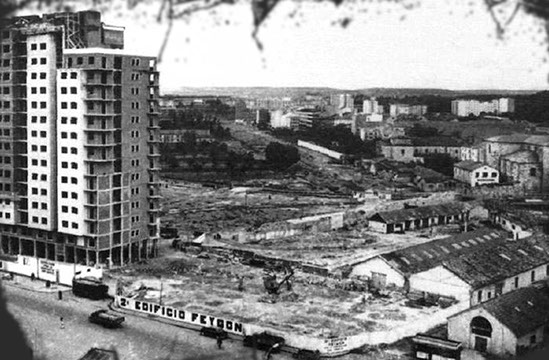 Calle Vitoria y al fondo la desaparecida Residencia Sanitaria