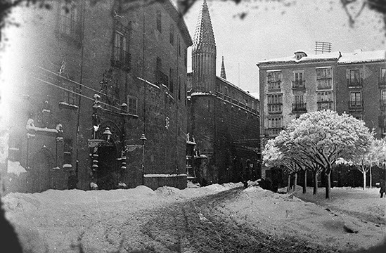 Vista del Palacio Episcopal 1850 y entrada a la calle de la Paloma
