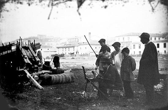 Sorolla pintando en el margen del rio Arlanzón . 1910