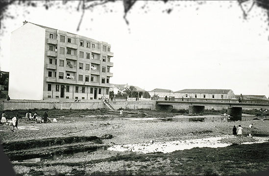 Orilla del río Arlanzón y Puente Gasset recién construido.